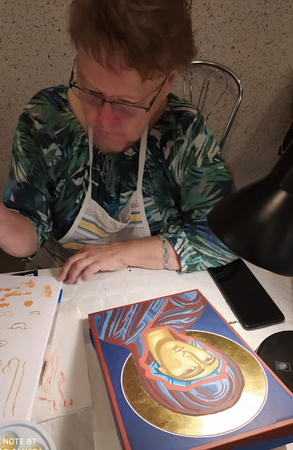 Spotkanie przy ikonie w gościnnej parafii w Przegędzy dobiegło końca. Tym razem pracowaliśmy przy Obliczu Matki Bożej starając się jak najdoskonalej oddać Matczyne spojrzenie, równe asystki i podpis. Dziękuję pięknie wszystkim Uczestnikom za zaufanie i możliwość wprowadzenia Was do świata ikon. Dziękuję szczególnie organizatorce - Danusi Kniażyckiej, która opiekowała się nami i sprawiła, że pracowaliśmy w tak komfortowych warunkach. Życzę wszystkim powodzenia i opieki Matki Bożej a także wielu błogosławieństw.