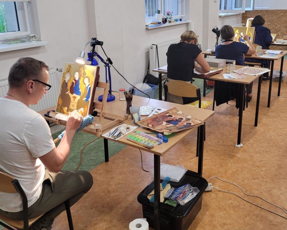 W sobotę zakończyliśmy naszą pracę nad jedną z najbardziej znanych ikon na świecie. Łatwo podobno nie było:-) Na pewno nasz trud, cierpliwość i modlitwa przydały się przy wszystkich drobnych detalach aby jak najpiękniej oddać Święte Oblicza - Boga, Jezusa Chrystusa i Ducha Świętego. Wierzę, że nasza praca przy ikonie to jednocześnie budowanie relacji z Bogiem a to ważna duchowa cegiełka, jak uczył nas podczas warsztatów Ks. Piotr Domaros. Bóg zapłać!